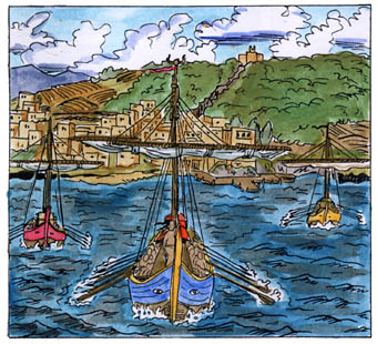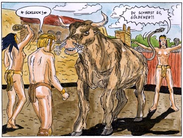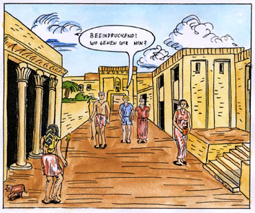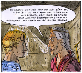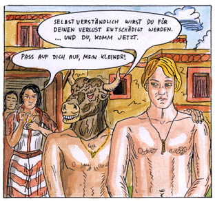 | philemon, who had drawn the aridela-comic, is also taken to minoan crete. he is taken in by the lady of a mansion. but his arrival had been foretold in a prophecy, so someone is trying to get hold of him. philemon later becomes one of minos´s servants and is supposed to accompany them to egypt. minos has plans for philemon there, but others have them as well. | ![]() |