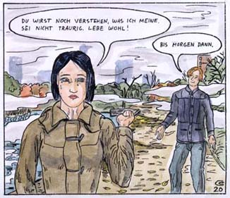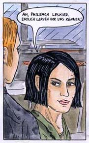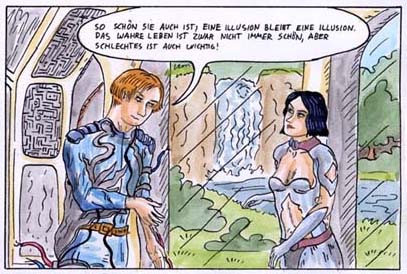 philemon: "heißt das, meine erlebnisse ind er bronzezeit stammen aus diesem experiment?" anna-charlotte eté: "das hier ist die zentrale einheit, der von glennson und mir entworfene umwandler. er codiert die gedächtnisbilder in wellenform und lädt sie auf ein speichermedium" ariel: "ich weiß ziemlich viel über dich, du aber nichts über mich. ich fürchte, das ich nicht die bin, für die du mich möglicherweise hältst. deshalb ist es besser, wenn wir uns nicht näherkommen." ariel: "du hast es erfasst! nichts, das hier ist und passiert ist das, was es zu seien scheint. gar nichts. " philemon: "so schön sie auch ist, eine illusion bleibt eine illusion. das wahre leben ist zwar nicht immer schön, aber schlechtes ist auch wichtig!" |