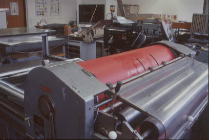 auf dieser maschine in der druckwerkstatt der kunsthochschule kassel wurden die plakate in format 70x100mm gedruckt.