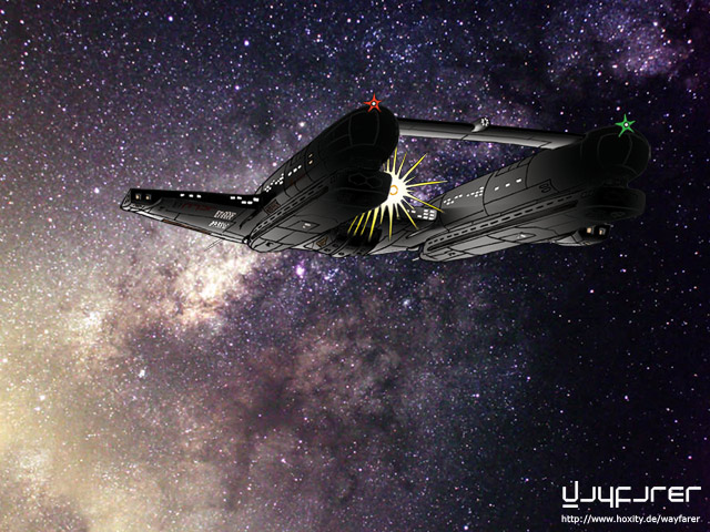 This is the spaceship a.s. wayfarer, registry code 1803. She has a length of 320m, a wingspan of 367 and a crew of about 250. The wayfarer comic books will be about the special role this ship will play in the fate of the galaxy